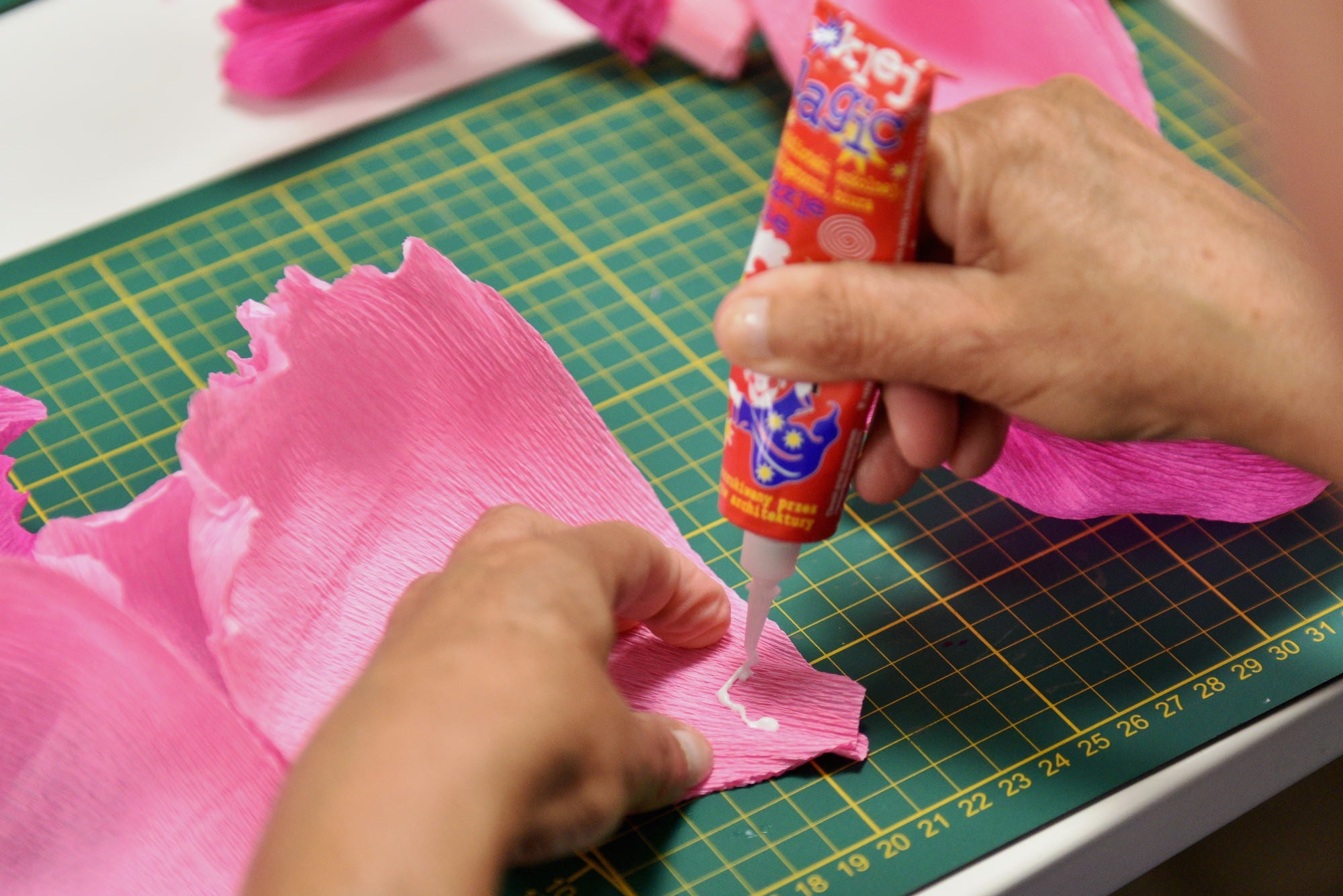 The meeting was led by designer, cosmetologist and costume designer, Beata Bojda, a versatile artist who, with great regard for tradition, uses folk-inspired tissue paper craftwork in her projects. She invited champions from her own KORONACJA (CORONATION) campaign, for women suffering from cancer, to take part in the workshops. The crepe paper workshops were supported by the Fundacja Strefa Kobiet (Women's Sector Foundation).